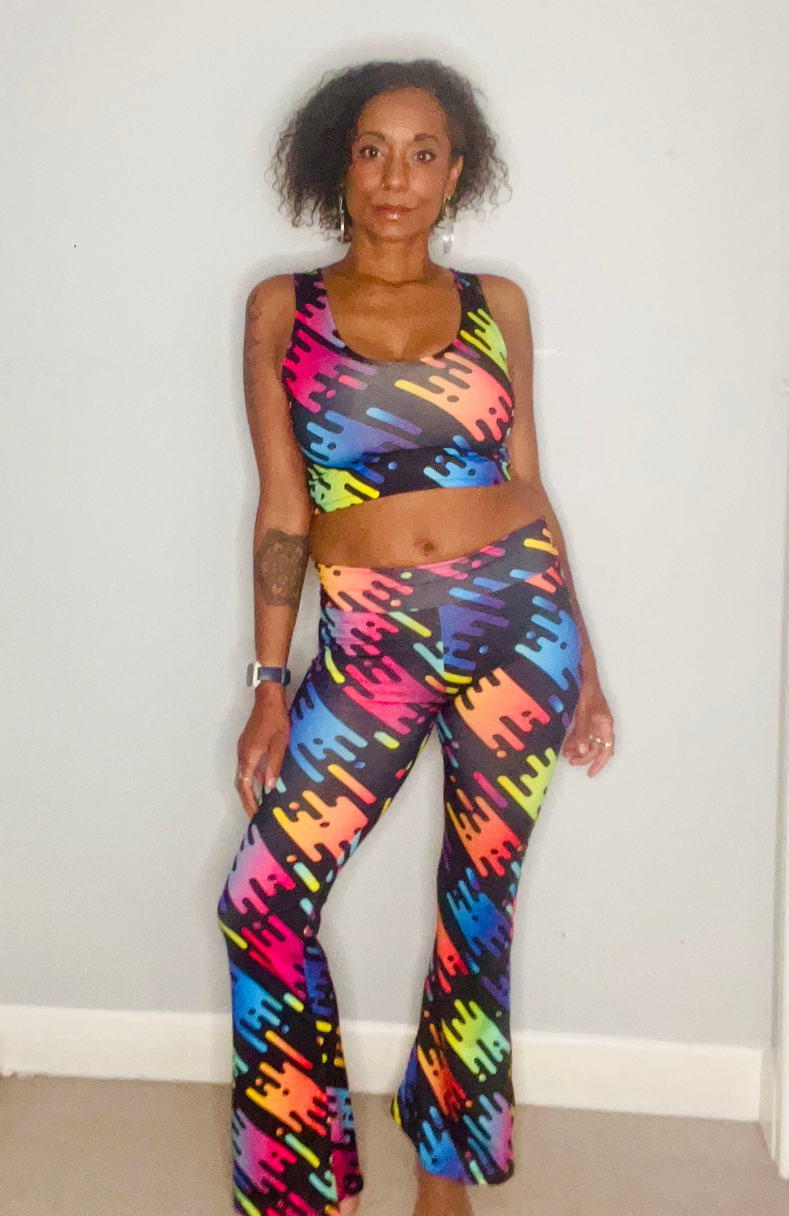Made from a recycled fabric, this top is UV reactive, lightweight and quick drying - making it perfect for festivals and raves!