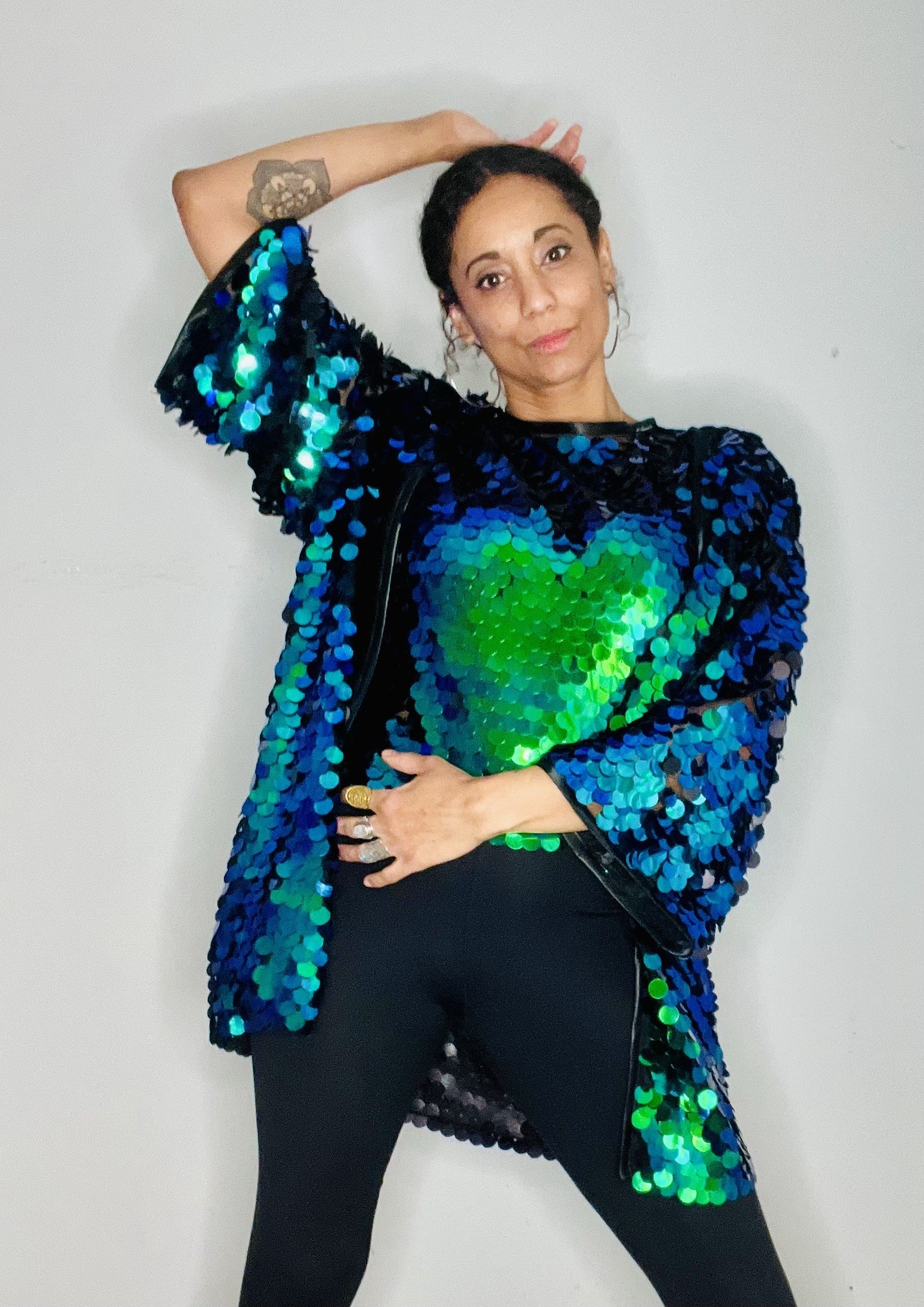 The giant iridescent sequins change colour and catch the light beautifully, so prepare for a ton of compliments when you wear this.